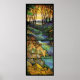 Magnífica cristalera tiffany con vidrieras de colores de ciervo bebiendo de un arroyo, en una cristalera colorida. Ver como enorme poster o impresión o más pequeña.