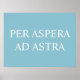 Impresión motivacional con la cita latina 'per aspera ad astra'. Una frase popular en la Antigua Roma, la traducción es "a través de la adversidad a las estrellas". El tipo de letra tiene un toque clásico que evoca inscripciones públicas romanas. La impresión tipográfica presenta texto blanco crudo sobre un fondo azul turquesa. Esta impresión inspiradora y elegante impactará en su hogar.
