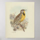Ilustracion de aves de la época de 1923. Pájaro moteado amarillo y marrón sentado en una rama de árbol.