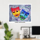 Máscaras de teatro de comedia y tragedia, diseñadas a mano por Sandra Gale. Este original dibujo es colorido y caprichoso y se ve muy bien en cualquier pared. Se puede regalar como regalo al actor que conoces, o como una adorable decoración colorida para ti mismo. Los rostros felices y tristes con colores coordinados representan el teatro y la actuación. Ideal para los amantes de las artes escénicas y es adecuado para todas las edades.