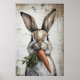 Impresión de conejo de primavera y zanahoria, Estampa de Cottagecore del conejo de Pascua, Decoración de pintura de pared de Pascua, Póster vintage imprimible rústico, Decoración de guardería