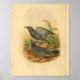 ilustracion vintage de Bruijn's Cuckoo Shrike Bird 1884. Con plumas negras y grises sentadas sobre una roca comiendo un insecto.