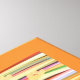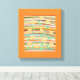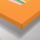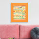 Impresión enmarcada por naranja en colorido diseño floral y de rayas. El marco naranja puede cambiarse a cualquier color para que coincida con la decoración.