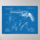 Revólver de época de 1885 de Wesson. Diseño técnico de patentes de EE. UU. Se han restaurado y mejorado todos los dibujos de patentes de EE.UU., por lo que se ven muy bien en copias pequeñas o grandes para el arte enmarcado. Fondo de papel de diseño técnico azul con dibujo de línea blanca.
