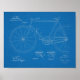 1899 Campana de bicicleta de época dibujo técnico de patente estadounidense. El freno consiste, esencialmente, en una banda elástica interminable, adaptada para pasar alrededor de un plato de fricción. Se han restaurado y mejorado todos los dibujos de patentes de EE.UU., por lo que se ven muy bien en pequeñas impresiones a los posters de pared para ver el arte enmarcado. Posters de anuncios de bicicletas bajo nuestra sección "Anuncios de publicidad de época" Fondo de papel de arquitectura azul con dibujo de línea blanca.