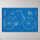 1891 Bicicleta de tracción en cadena Vintage con asiento de muelle y freno delantero. Diseño técnico de patentes de EE. UU. Se han restaurado y mejorado todos los dibujos de patentes de EE.UU., por lo que se ven muy bien en copias pequeñas o grandes para el arte enmarcado. Posters de anuncios de bicicletas bajo nuestra sección "Anuncios de publicidad de época" Fondo de papel de arquitectura azul con dibujo de línea blanca.