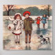 Una escena de un calentamiento del corazón de otra época: gente feliz patinando en un estanque congelado.