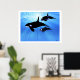 Dos hembras y un macho cazan ballenas juntas en el hermoso océano claro.