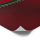 Campanas de oro colgadas en el centro de una corona de hojas oscuras y joyas rojas para bayas, interseccionadas por cintas de rojo y verde con estrellas de oro. Como un regalo de Navidad envuelto en rojo oscuro y atado con cintas de rayas brillantes.