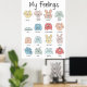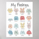 ¿Buscando una manera divertida para que tus hijos te muestren cómo se sienten? Esta es una gran manera para que sus pequeños apunten y les digan cómo se sienten, cuando tienen problemas para expresarse. Esta impresión muestra un divertido conejito con 16 expresiones comunes, es educativo, lindo y decorativo. **Este listado es para 1 impresión de conejito en tonos arcoiris** La impresión también se ofrece en colores cálidos y tonos fríos en anuncios separados, así como se muestra con un gato o un perro en lugar del conejito. Si su habitación es neutral, le ofrezco el mismo diseño en blanco y negro - incluso puede colorearlo usted mismo por diversión :) - también en una lista separada.