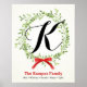 Familia Monograma de vacaciones Mistletoe Wreath Poster