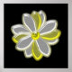 Esta brillante impresión floral presenta una imagen digital de una flor de margarita con pétalos de color blanco y amarillo con un centro amarillo. Los pétalos parecen brillar con una hermosa calidad reflexiva. El color de fondo es negro para el máximo contraste y el resultado es impresionante. Un borde amarillo completa el diseño. Esta impresión está disponible en varios tamaños diferentes, el mayor de los cuales se muestra aquí.