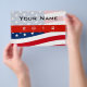 Promocione los puntos fuertes del candidato con este folleto de campaña audaz y fuerte. Fácil de usar diseñador en línea. La publicidad promocional de la campaña presenta un tema patriótico de EE. UU. Los candidatos a cargos públicos pueden utilizar estos artículos promocionales para equipar al personal y promover la agenda.