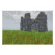Escena 3D creada en Vue, que representa el lugar de una antigua batalla, con sólo las ruinas en ruinas que se derrumban de una torre medieval de piedra y flores rojas en el césped para conmemorarla. La caída de la lluvia y el suave efecto acuarela aumentan la tristeza de la escena de la cima de una colina.
