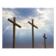 Tres viejas cruces de madera, acariciadas, se alzan contra un cielo glorioso con manchas de luz solar brillando desde las nubes. Esta impresión de alta calidad está disponible con numerosas opciones de encuadernación/acabado.