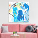 Linograbado digitalizado, en colores frescos. Cara de Gran Danés.