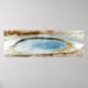 Fotografía panorámica colorida de una piscina termal en el Parque Nacional Yellowstone.