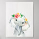 Esta acuarela floral de elefante bebé es la adición perfecta para decorar al estilo granja. Cuenta con un lindo elefante bebé con flores coloridas sobre un fondo de madera de color crema claro. Esto hace una excelente adición a su cocina de granja, baño, guardería o habitación de los niños.