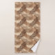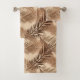 El sistema de la toalla en una impresión del traslapo de hoja de palma siluetea, en sombras del moreno marrón y del camello, contra un moreno ligero/un fondo beige