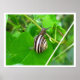 Fotografía de un caracol de tierra a rayas en una hoja.