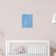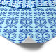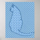 Imagen digital de medios mixtos de un gato sentado de inspiración japonesa, en un patrón de batik, contra un fondo de impresión kimono - azul cielo suave, azul cobalto oscuro y blanco, acentuado con azul oscuro