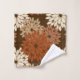 Toalla colocada en una versión moderna de una impresión tradicional japonesa de kimono floral - flores estilizadas en tonos tostados, marrón rojizo y beige sobre un fondo marrón chocolate oscuro