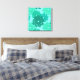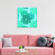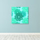 Lienzos envueltos en una versión moderna sobre una tradicional huella de kimono floral japonesa - flores estilizadas en tonos verde verde azulado, turquesa / pavo real y espuma marina en un fondo acuático claro