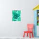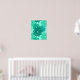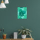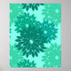 Poster en una versión moderna sobre una tradicional impresión de kimono floral japonesa - flores estilizadas en tonos verde verde azulado, turquesa / pavo real y espuma marina en un fondo acuático claro
