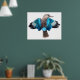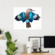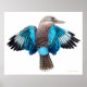 Diseño original de arte fino de un volante Blue Winged Kookaburra de Australia, de la diseñadora/ilustradora Carolyn McFann impreso en un poster de calidad para los amantes de las aves.