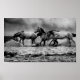 Caballos en agua de mar grunge pintura vintage en blanco y negro