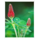 Un par de flores de trébol se levantan de un bosque verde. El fondo de un verde profundo y sin foco aporta un agradable contraste a las flores de color rojo vivo.