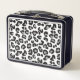 Caja de almuerzo en una huella digital textil en un patrón de leopardo texturizado - puntos de leopardo en negro, acentuados con gris plateado / gris, sobre un fondo blanco
