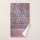 En este elegante conjunto de toallas hay un lazo que divide la huella purpurinoso del leopardo plateado y el fondo rosado caliente donde se puede personalizar con una letra, logotipo, frase o nombre. Perfecto para una decoración temática de leopardo