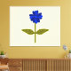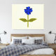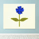 Esta impresionante huella de lienzo muestra una imagen digital de una margarita con un tallo verde con dos hojas verdes sobre ella y pétalos de color azul claro y oscuro con un centro azul claro. El fondo es amarillo sol.