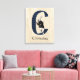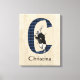 El diseño original para Alicia en Maravillas, amantes de todas las edades, incluye letra mayúscula / C inicial con relleno de arlequín negro y azul y ilustracion original de Conejo Blanco tintado, sobre un fondo de panel falso. Personalizar con nombre u otro mensaje