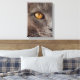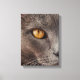 Acercamiento parcial de la cara de un gatito grisáceo magnífico con un ojo de avellano claro. Impresión de lienzo disponible en otros tamaños y estilos de nuestra tienda BsApparelPlus de Zazzle. Visita nuestra colección 'The Lady Feline' para ver artículos y regalos similares. ¡Gracias por comprar con nosotros!