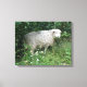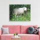 Esta impresionante impresión de lienzo muestra una fotografía de una linda oveja esponjosa. La oveja está rodeada de flores silvestres y de hierba larga y está comiendo algunas hojas. Tiene un grueso abrigo blanco de lana y una nariz negra linda.