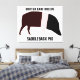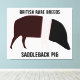 Esta impresionante impresión de lona presenta una representación de tipo personalizado del cerdo de Saddleback, mi rara raza favorita de cerdo británico. Se reconoce fácilmente por el patrón de albarda rosa que le da nombre a la raza. El resto del cerdo es negro. El texto negro encima y debajo del cerdo dice: "Raras razas británicas de cerdo a caballo".