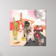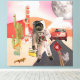 Moderno Collage Wall Art. Este es un ícono retro vintage con Astronauta haciendo su camino desde un motel con cactus, desierto, lagarto, retro car y un pollo cruzando la carretera. Colores de naranjas, rosas, verdes con blanco y negro. Diversión, humor y ephemera ecléctica. Se trata de una superficie plana con un acabado liso. Arte divertido y surrealista que combina el collage con las técnicas de arte digital, con un toque retro vintage de mediados de siglo.