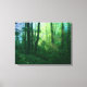 Rayos del sol matutino cayendo en un brillante bosque de verano, con enormes árboles cubiertos de hiedra y una gruesa manta de arbustos. Una fotografía manipulada digitalmente para dar a las viñas sobrecultivadas, la bruma azul-verde, los rayos de oro y el árbol verde primaveral una calidad de ensueño.