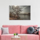 Un árbol al borde de un lago, bloqueando parcialmente el sol. Las montañas se pueden ver más allá de la costa. El procesamiento de HDR proporciona detalles y profundidad adicionales.