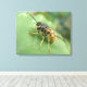 Esta impresionante impresión de lona muestra una fotografía de primer plano, increíblemente detallada, de una magnífica mosca franja amarilla y negra a rayas que descansa sobre una hoja. La fotografía fue tomada usando macrofotografía para un resultado fantástico y detallado.
