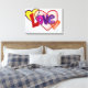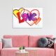 Personalice la impresión de arte de lienzo envuelto en pintura cardíaca con su propio texto e imágenes usando la opción de Personalizar. ¡Haz regalos especiales de arte de El día de San Valentín, Boda, compromiso, bebé o canvas de amor! La palabra "amor" pintada en rojo, rosa y morado contra el amarillo, rosa y el corazón naranja. Los corazones se intersectan y mezclan colores en solapamiento como los muchos aspectos del amor en nuestros amores. Esta pintura también viene en versión purpurina. La serie inspiradora de pintura se toma del texto utilizado en las pinturas de ángel. "Elijo conocer el amor" -Mi vida, Mi elección "En mi vida elijo conocer mi amor"- Siente belleza "No puede paralizar el amor" -Lo que el cáncer no puede hacer Estas imágenes están diseñadas para proporcionar reflexión y meditación en una sola palabra. La idea es pensar en la pintura y te ayudará a tener una actitud positiva asociada con esa palabra que será emocionalmente sanadora para una persona. También puede combinarlos para hacer su propia serie de palabras para meditación/ contemplación. Las ganancias de esta venta apoyan a la organización sin fines de lucro 501(c)3 DonnaBellas Angels.