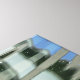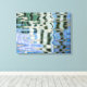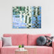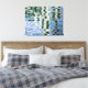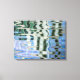 Una inusual fotografía de edificios reflejados en el agua creando un patrón colorido impreso en un lienzo.