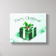 Adorna sus paredes con alegría de vacaciones con esta publicidad de tela estirada de regalo de los Navidades verdes. El diseño de la imagen de lienzo incluye un regalo de Navidades verdes vibrante adornado con bayas y copos de nieve cayendo contra un elegante desplazamiento y hojas de fondo. También hay artículos de regalo y de vacaciones disponibles con este diseño.