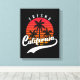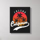 Impresión de lienzos frescos con un diseño retro con puesta de sol y palmeras sobre fondo negro (personalizable bg). Este diseño también presenta a California en un tipo de letra manuscrita con un glifo de cola batida para ese elegante estilo retro. Esta impresión de lona es sólo para ti si eres de Fresno o puedes conseguirla como regalo o recuerdo para alguien.