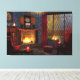 Un acogedor rincón de lectura en un día lluvioso de otoño. Alrededor de la chimenea hay unos sillones rojos mullidos, con pilas de libros y tartas y una tetera para completar el confort. En el exterior, un sauce amarillo y una cubierta roja de arce y hayas se ven oscurecidos por la lluvia que sopla la ventana, donde un gato jengibre se sienta mirando hacia afuera.