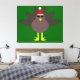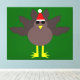 Esta impresionante impresión de lona presenta un personalizado gracioso de un pavo Navidad con grandes ojos negros, un pequeño pico amarillo y plumas de cola pegadas. Los pies se encuentran en direcciones opuestas, lo que hace que el pavo parezca torpe. El pavo lleva un sombrero de Santa Claus rojo y blanco y está listo para los Navidades.