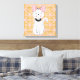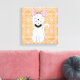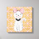 Cuidado gato blanco con collar negro y puntito de polka rosa/blanco sobre fondo rosa y dorado