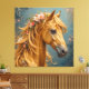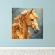 Encantadora imagen de un caballo dorado con mané florido adornado con flores pastel, evocando belleza y elegancia. Los detalles y el encanto son atractivos para los amantes de la naturaleza y del equino.